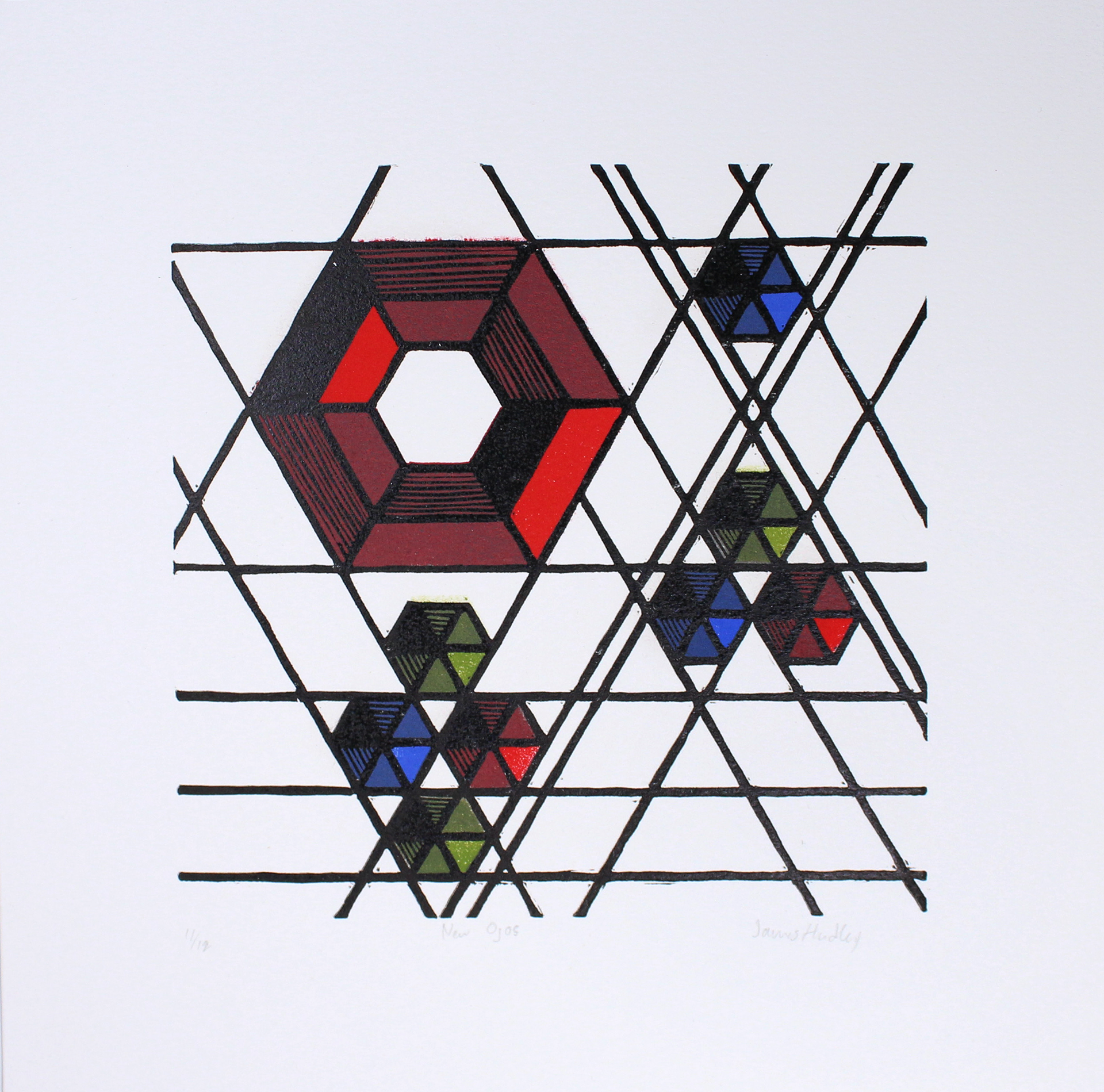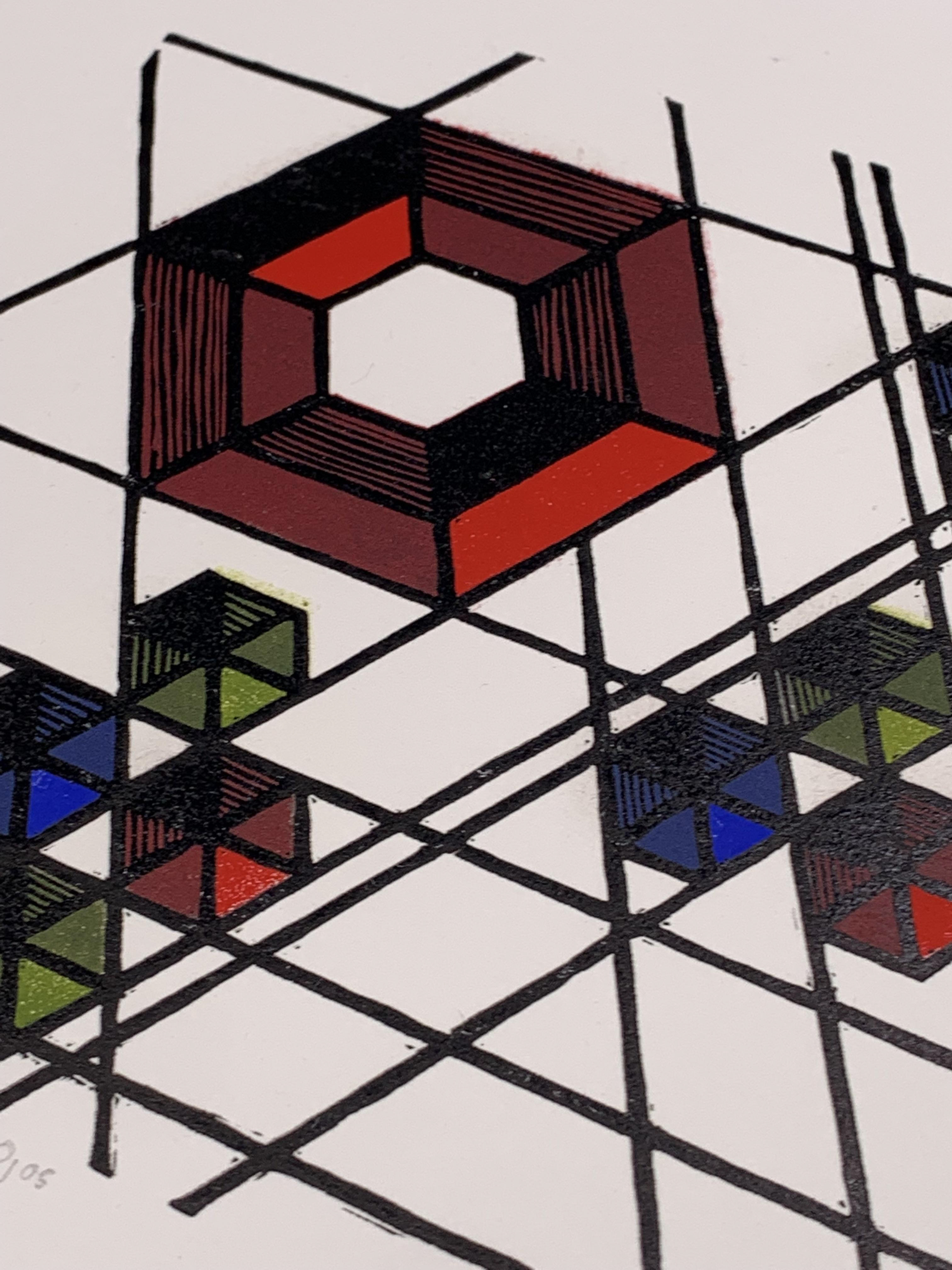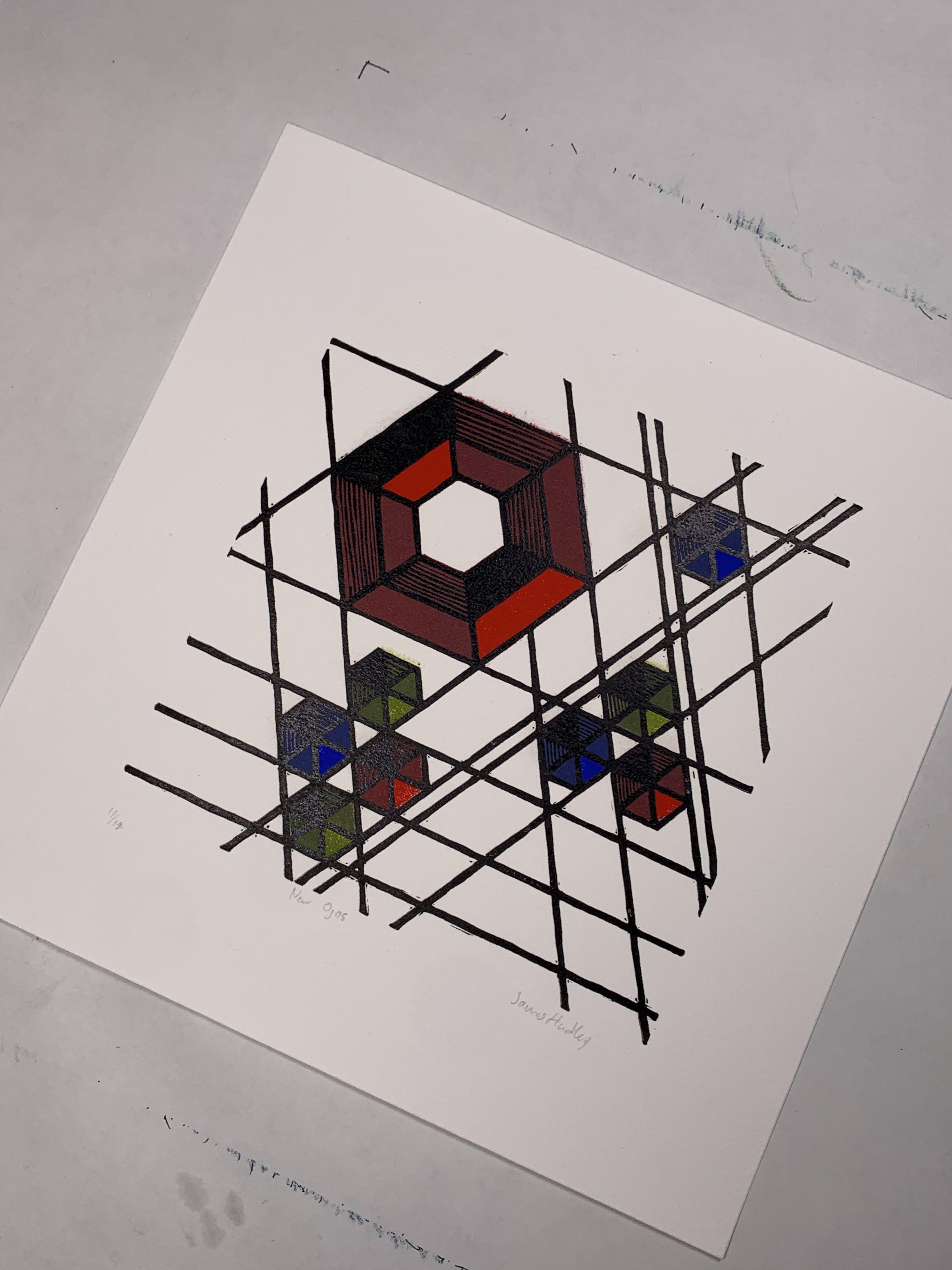 9" x 9" image size 6" x 6" 5 layer linocut on Lenox cotton paper 2013