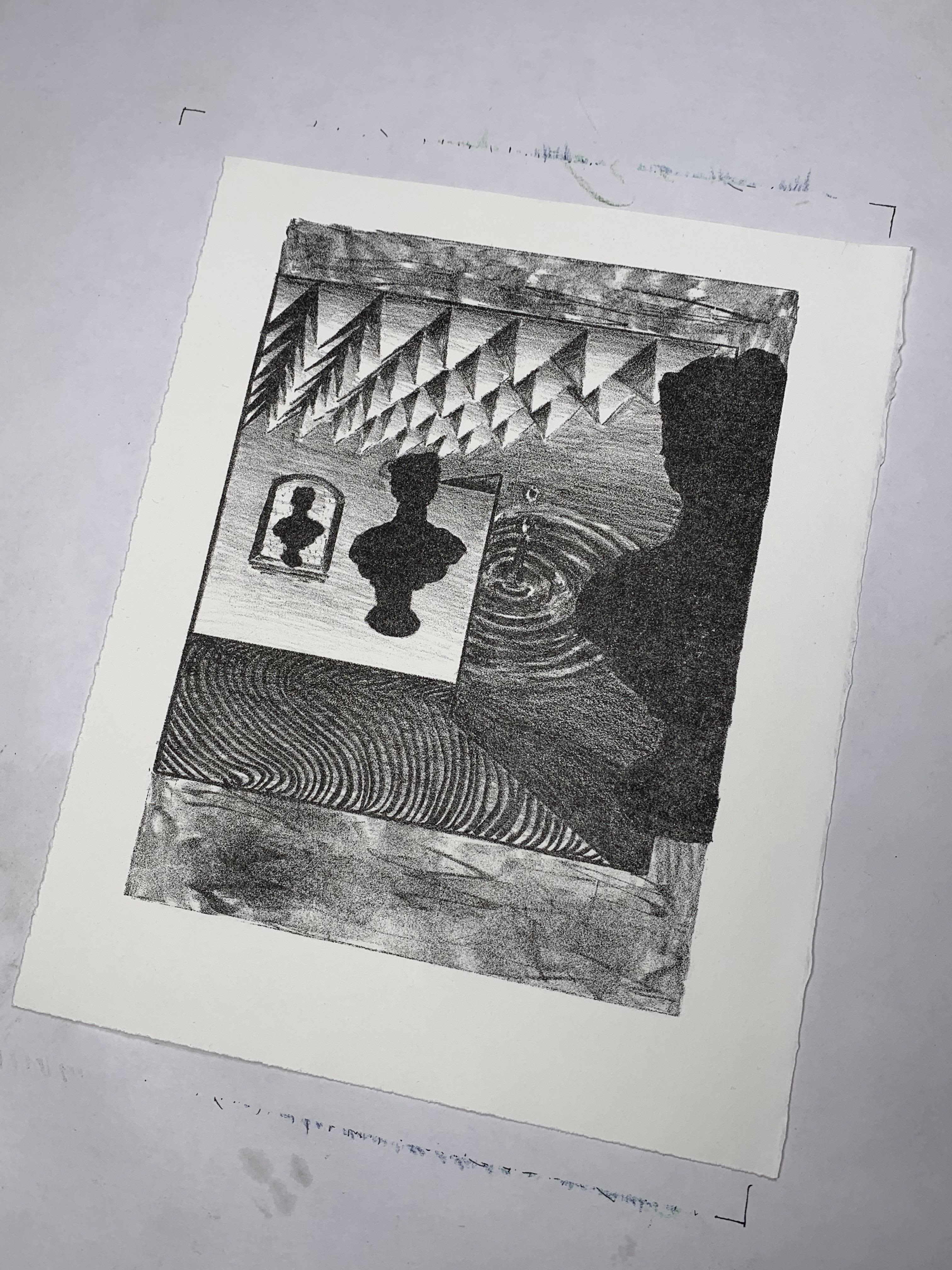 8" x 10" image size 6" x 8" lithograph on Rives Lightweight paper 2016
