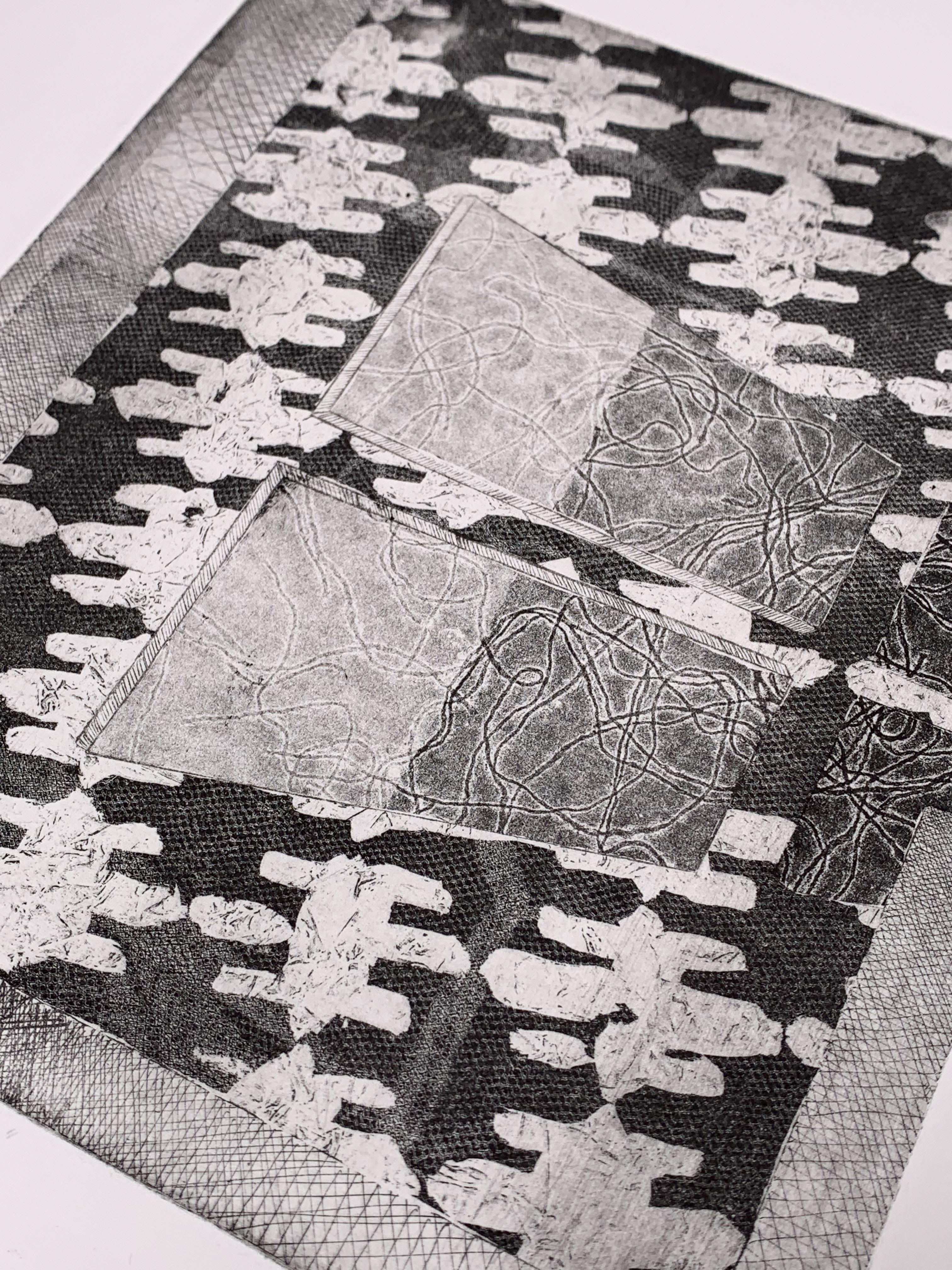 11" x 13" Aquatint, etching and soft ground on Stonehenge cotton paper 2017 Color variations available.