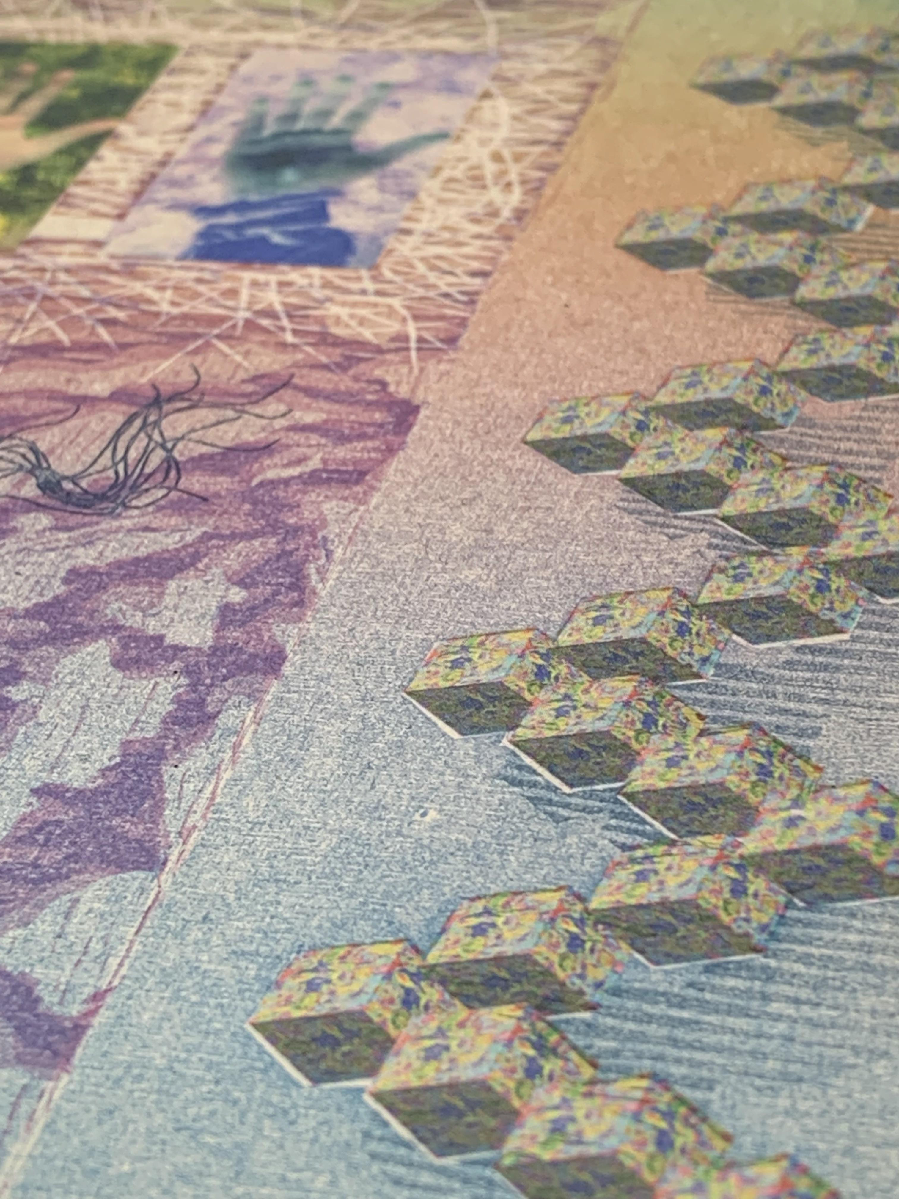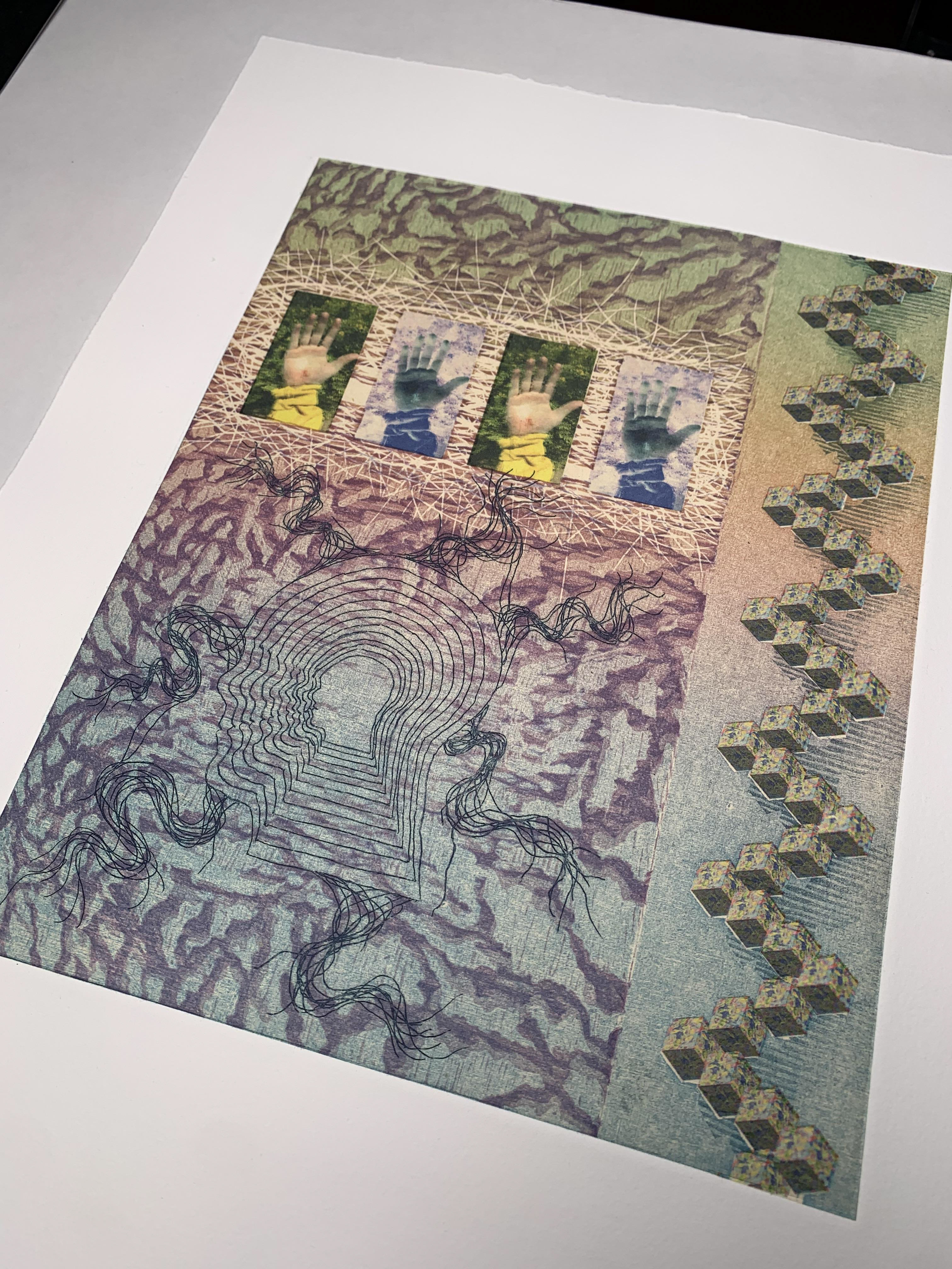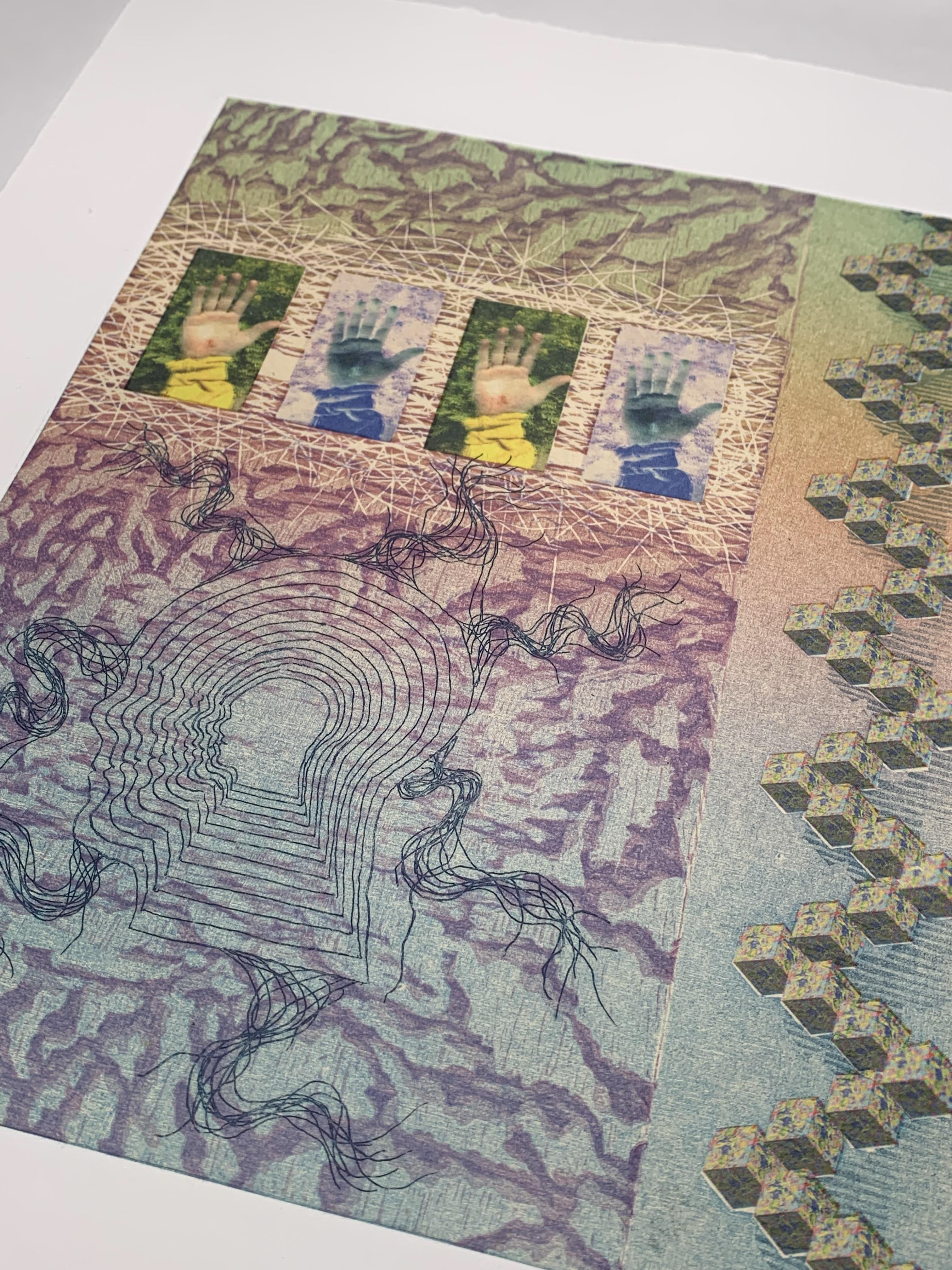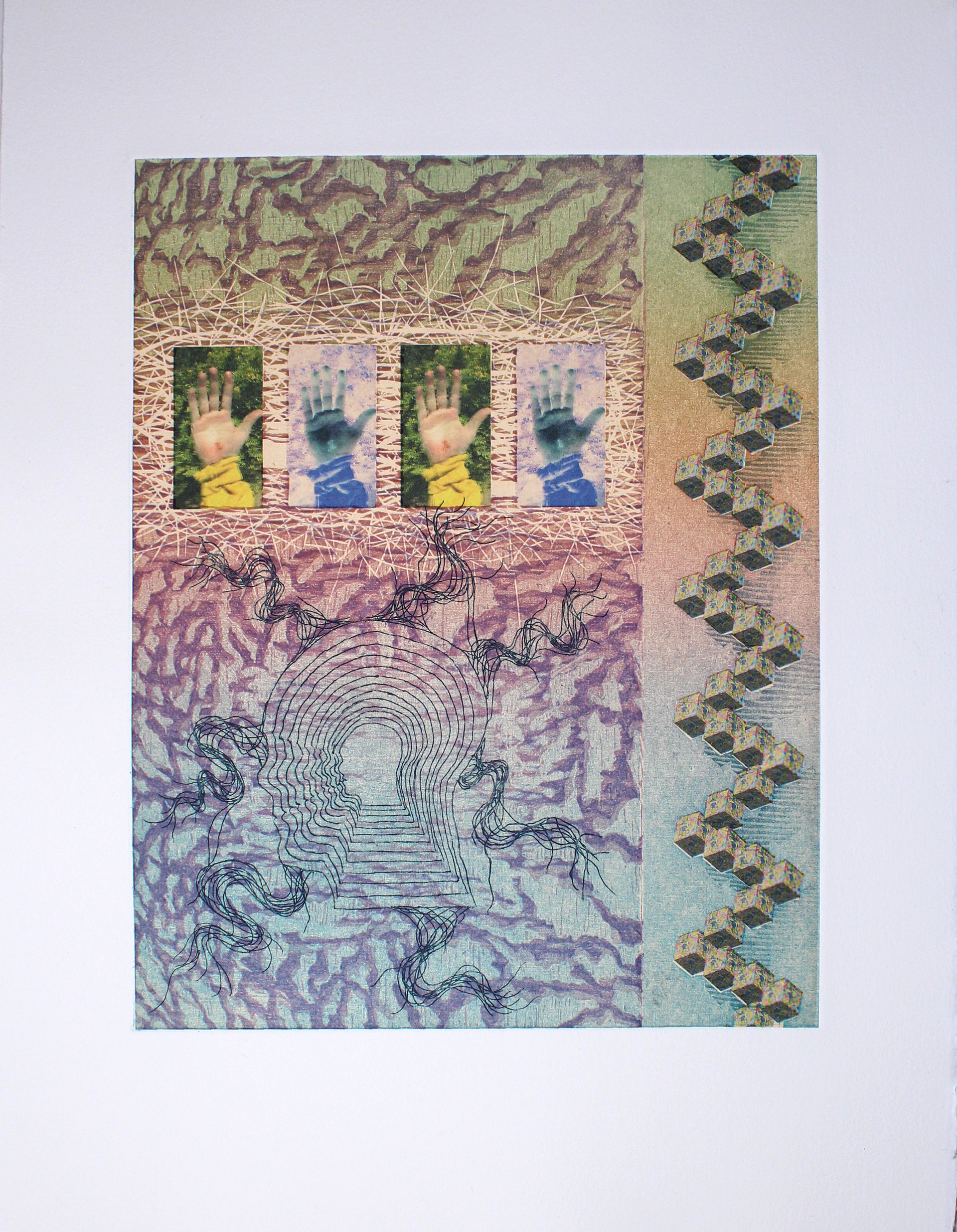 11" x 14" image size: 8" x 10" 6-layer print with woodcut, etching, chine colle and digital print 2018